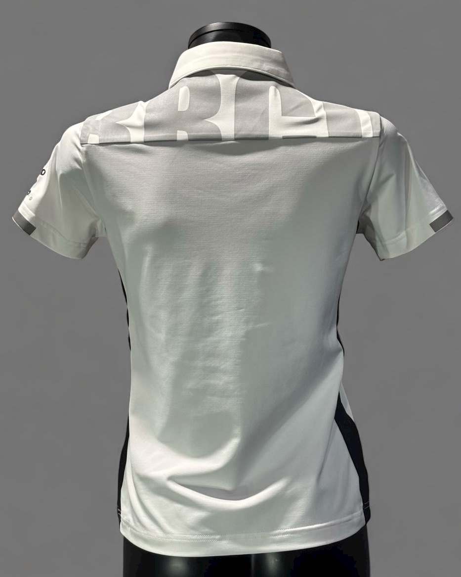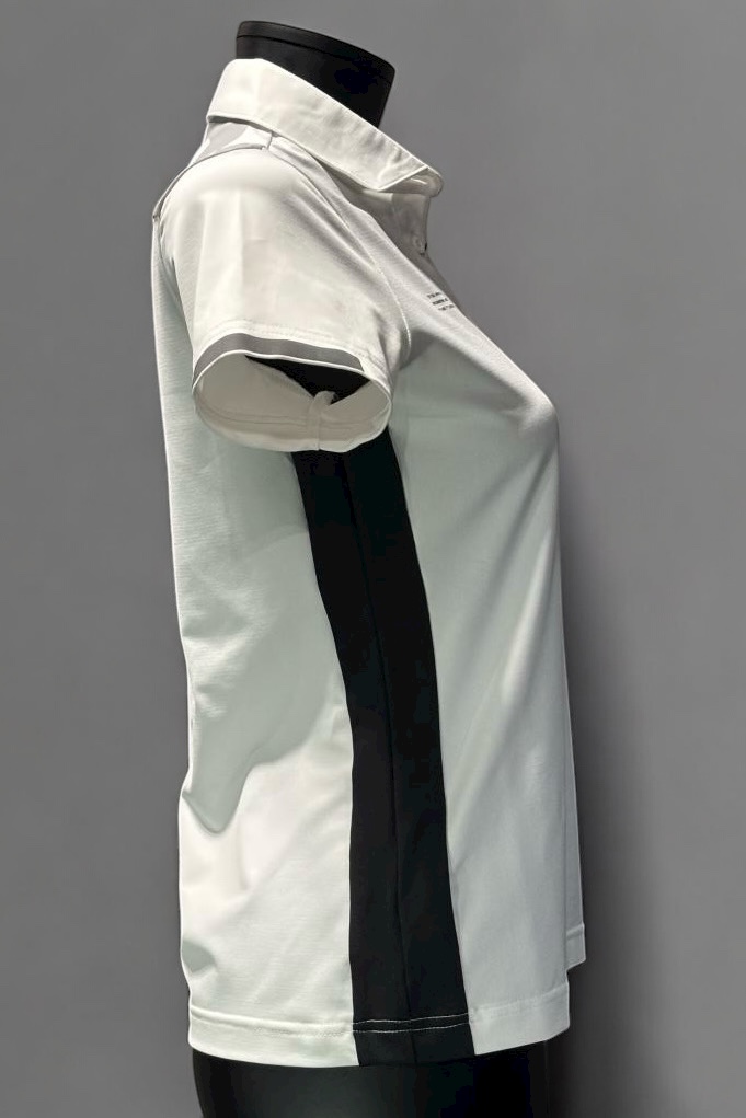 袖、脇のリフレクターと生地のカラーのコントラストが印象的なラインポロシャツ。