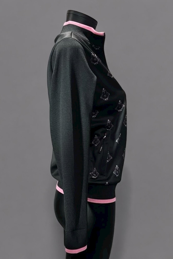 フロントにはメタリックシルバーのハーフジップを採用し、クラシカルなバロックパターンをブラッシュアップさせています。