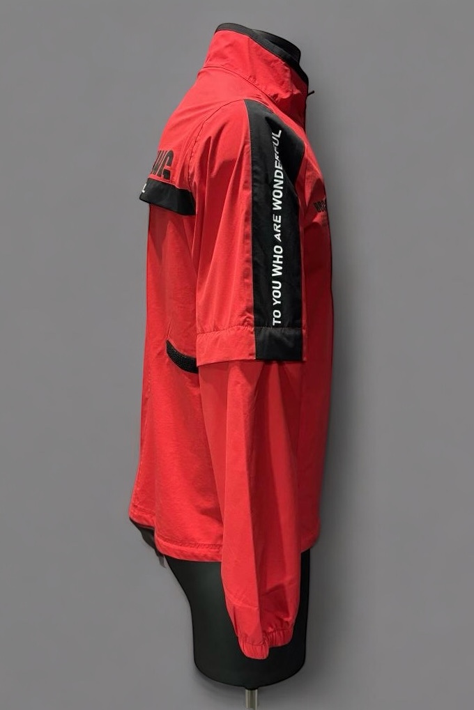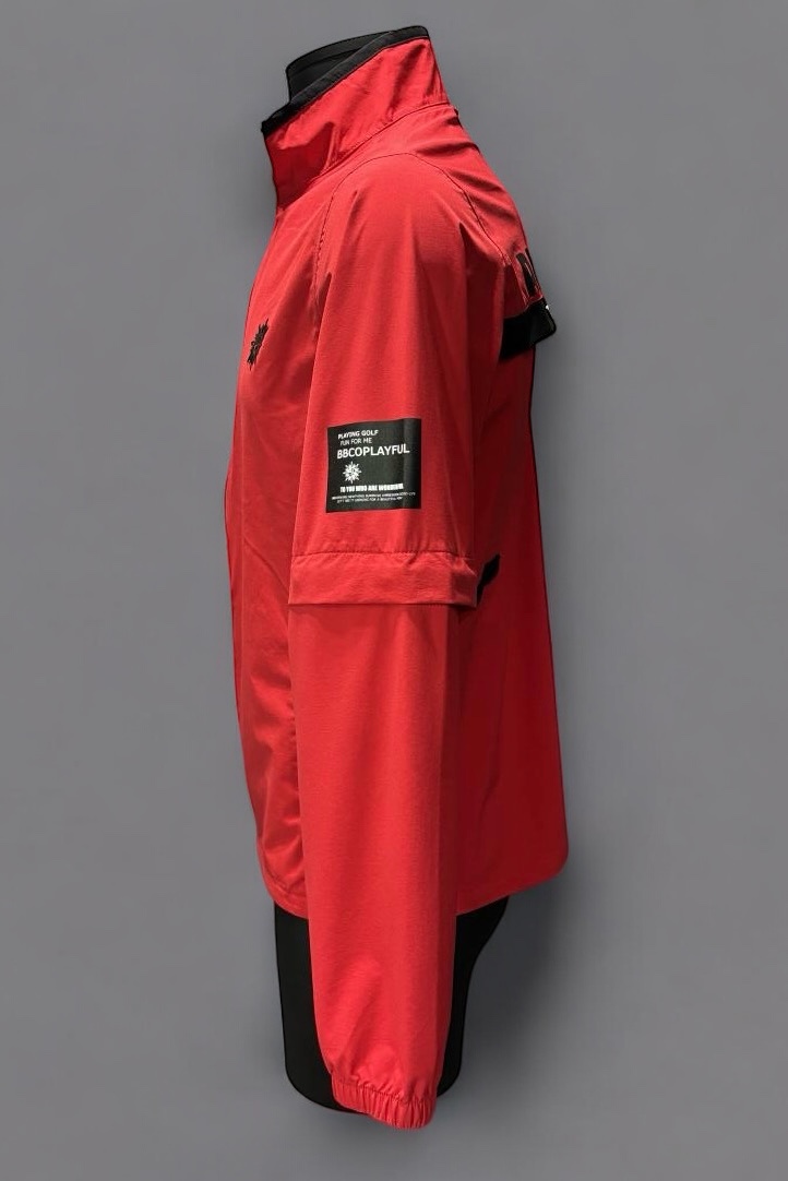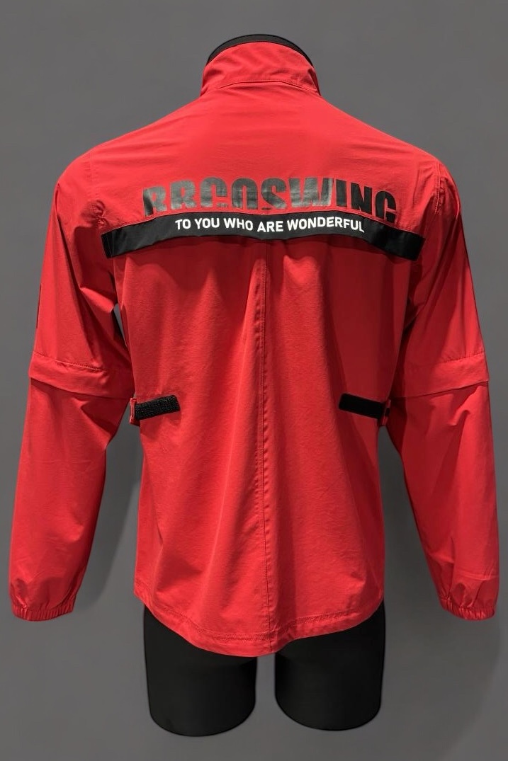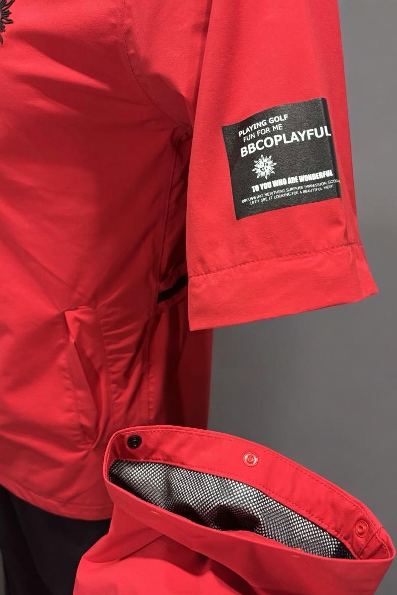 トップスの袖はスナップ釦により着脱可能となっており、半袖として着用することもできます。