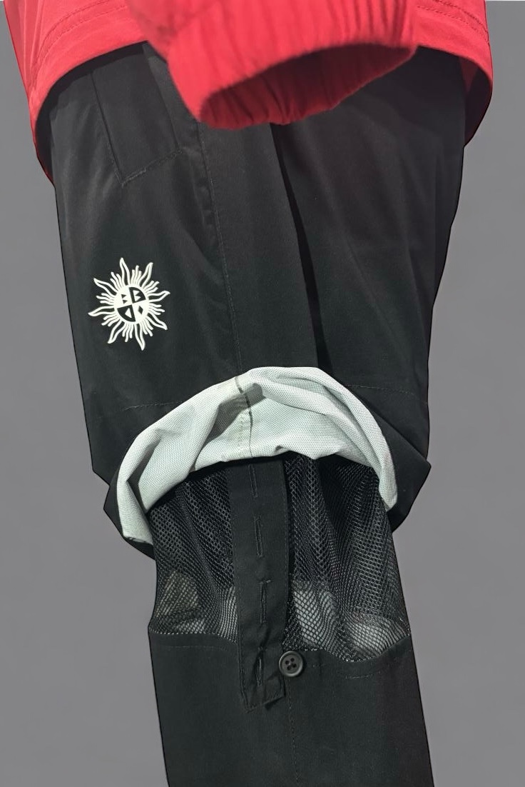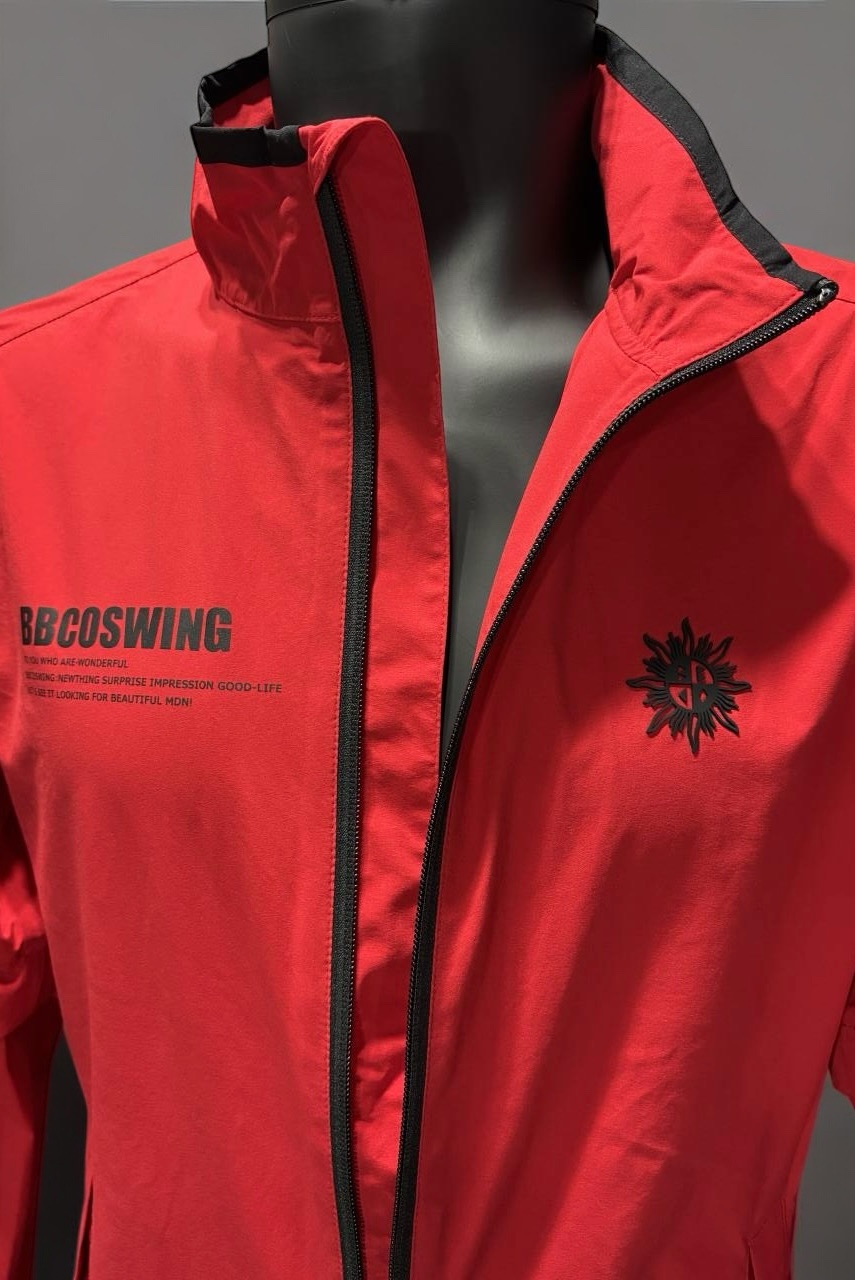 トップスの左胸とボトムスの左前に配したブランドアイコンの太陽マークは通常のプリント技法とは異なるシリコンプリントを採用することで立体感を出し、存在感を演出しています。