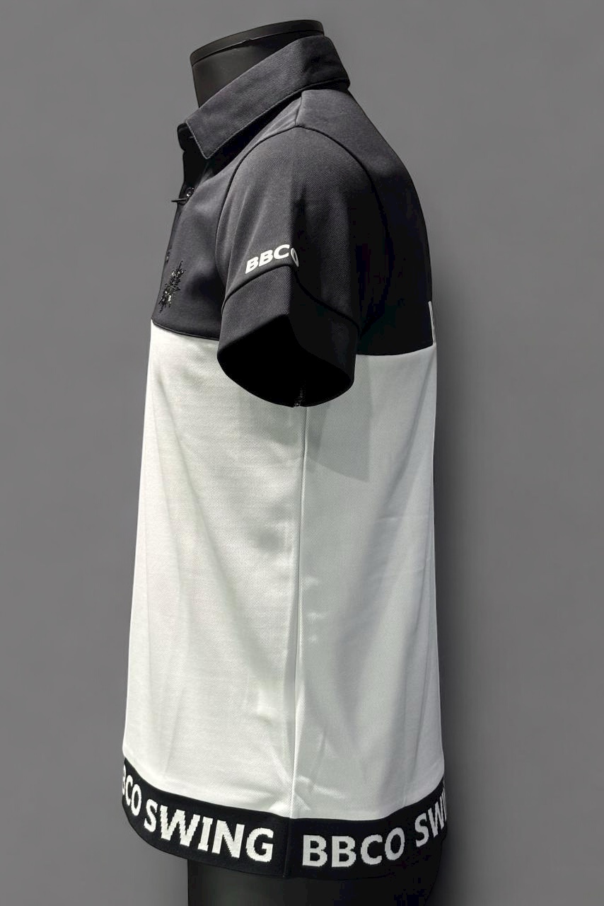 上下に配色で切り替えたデザインでカラーコントラストを効かせたシンプルPOLO。袖、背中と、裾のリブの文字がアクセントに。