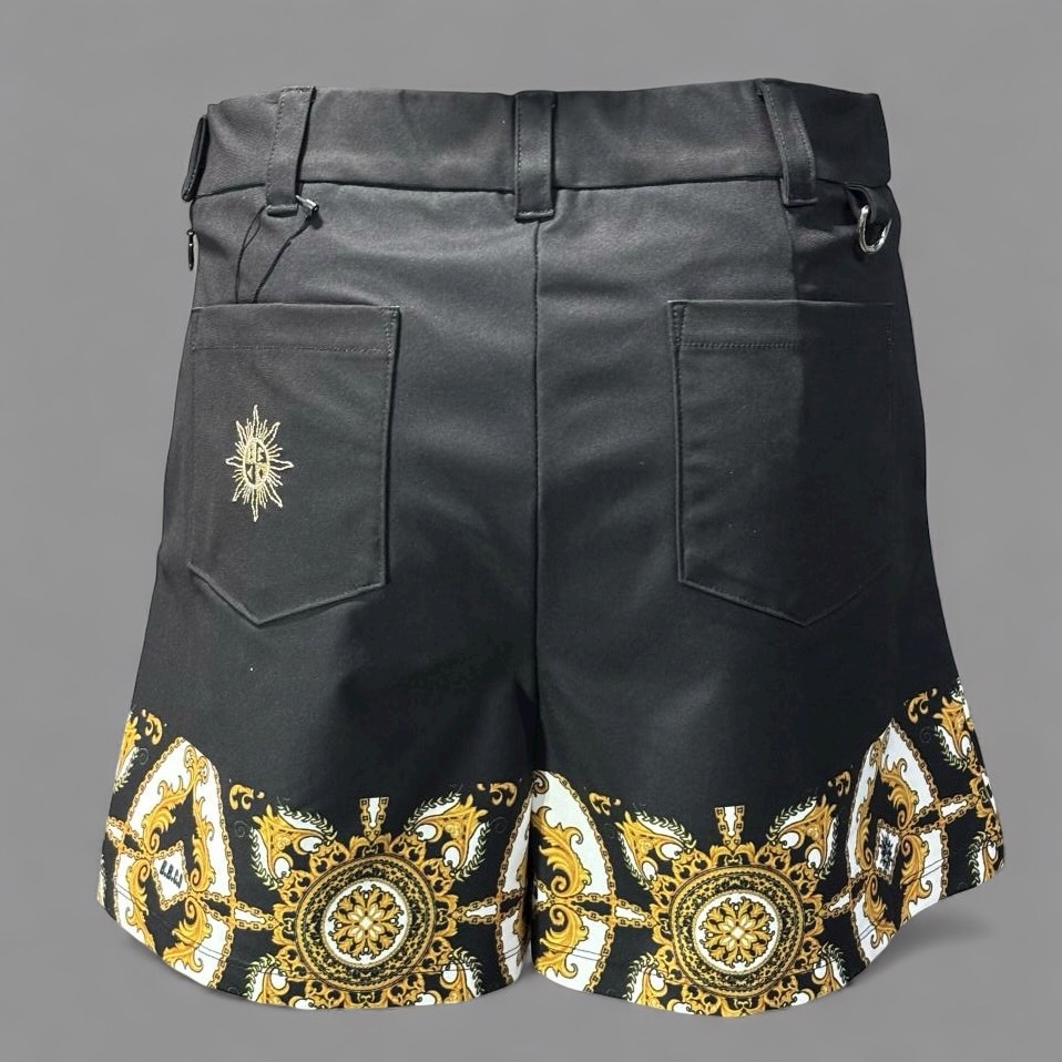 裾にパロック柄プリントを入れ、前姿はプリーツスカート・後姿はショートパンツになっているキュロットスカートです。