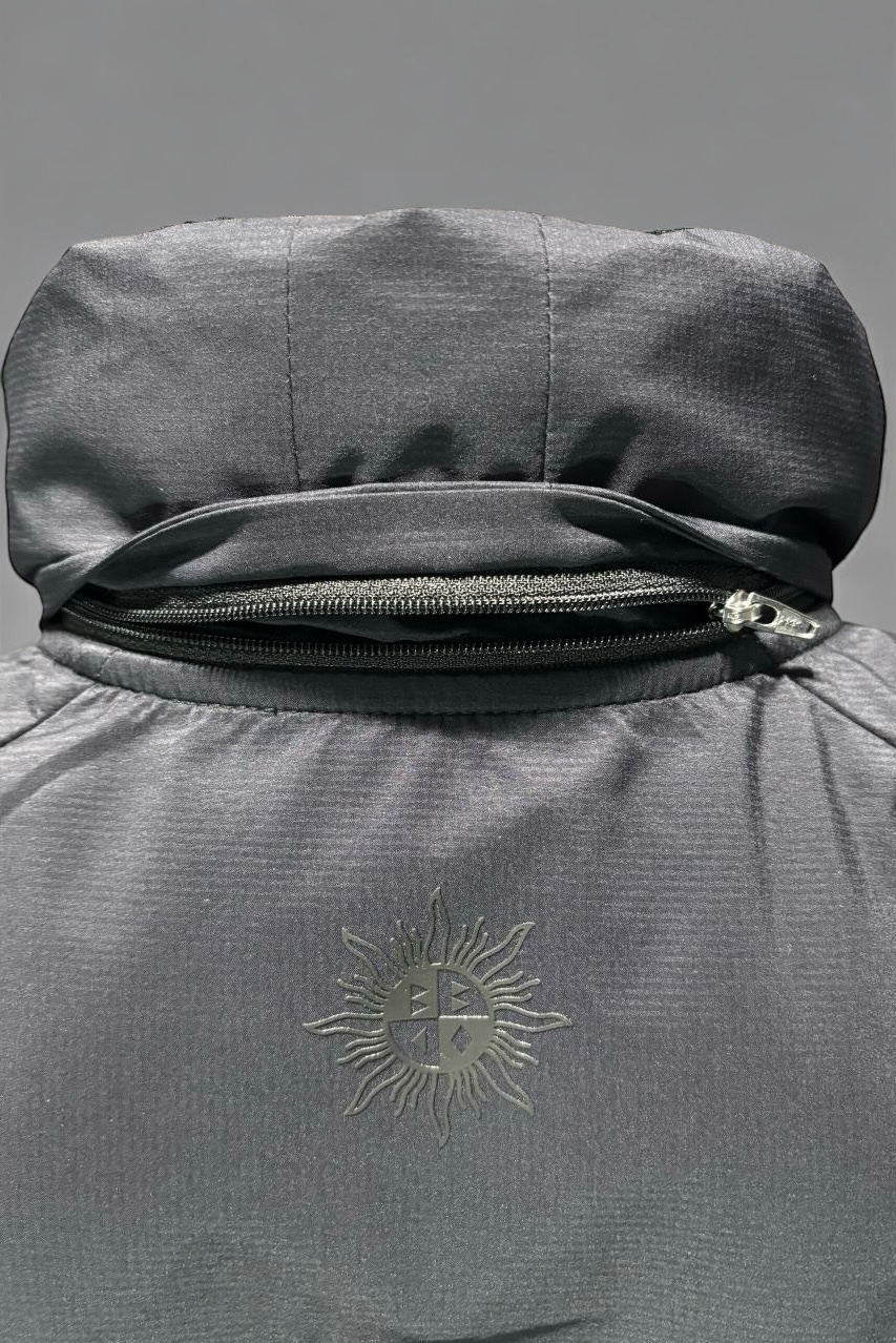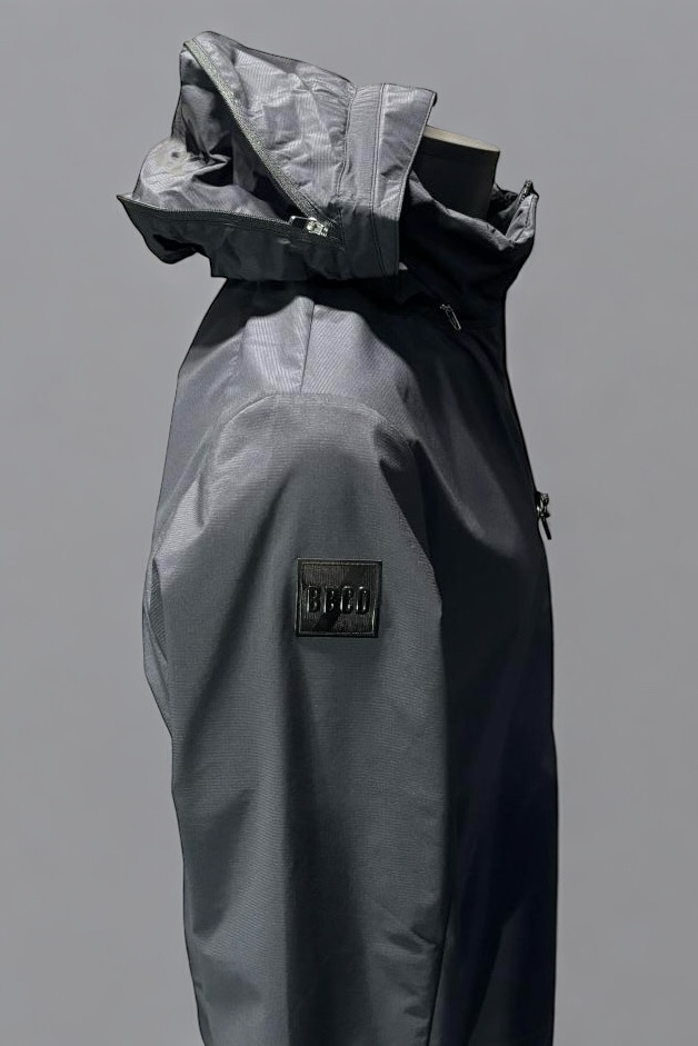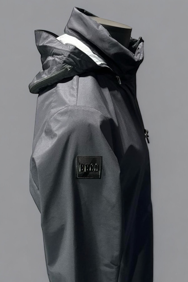 表裏ナイロンの間に特殊フィルムを内蔵した一体型3レイヤー素材は、耐水圧20.000㎜レベル、透湿度8.000g/㎡/24hrレベルの高機能に加え防風性があり、マルチ機能がアクティブなシーンをサポートする素材です。